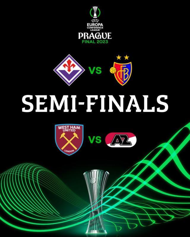 半决赛对阵为:佛罗伦萨vs巴塞尔(列前的先主后客),西汉姆联vs阿尔克马尔,两回合分别在5月10日和5月17日进行。
