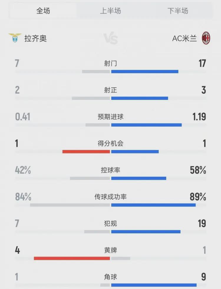 纵观全场,数据不会撒谎。米兰控球率高达58%,狂轰17脚射门,却仅有3次射正 。这种得势不得分的窘境,像极了本赛季米兰多次的缩影。上半场,拉齐奥的伊萨克森和泰勒甚至两次用砸中横梁的爆射,提前给米兰敲响了丧钟,只是当时警报声被红黑拥趸们侥幸地当成了背景音 。第75分钟,莫德里奇角球制造混乱,阿特卡梅的抽射破门一度让替补席陷入疯狂,但主裁判精准地吹罚了手球在先,进球无效 。那一刻,运气似乎也站在了拉齐奥一边,或者说,命运更倾向于惩罚那些在关键时刻掉链子的球队。